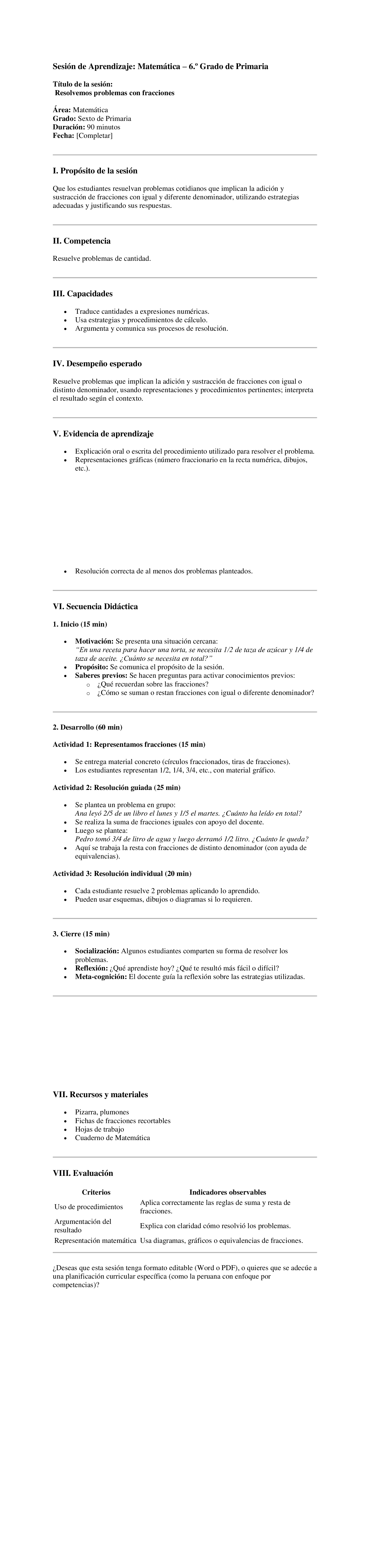En esta actividad estamos detallando la forma como realizar nuestra sesión de aprendizaje con el tema de fracciones